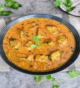 Cubes of chicken roasted in a tandoor clay oven cooked with mildly spiced tomato gravy